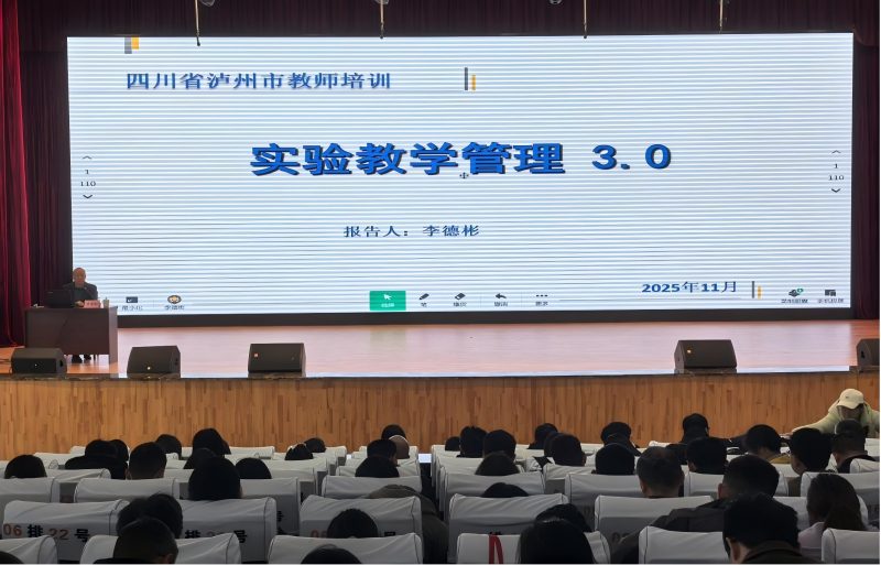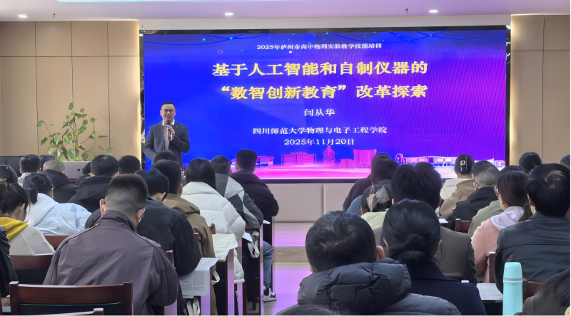 11月21日,为期2天的2025年泸州市普通高中物理实验教学技能培训在泸州开放大学圆满落幕。本次培训由泸州市教育和体育局主办,泸州市教育技术装备管理所承办,国家开放大学培训中心承训,以“实践探索・创新赋能”为主题,汇聚全市110余名高中物理教师及实验教学管理人员,通过前沿理论讲解、实操技能演练、案例分享交流等多元形式,为泸州高中物理实验教学注入新动能。培训紧扣国家科学教育战略要求,聚焦“双新”改革、技术融合、规范管理三大核心议题,特邀省内外高校学者、教研员、一线教学名师联袂授课。