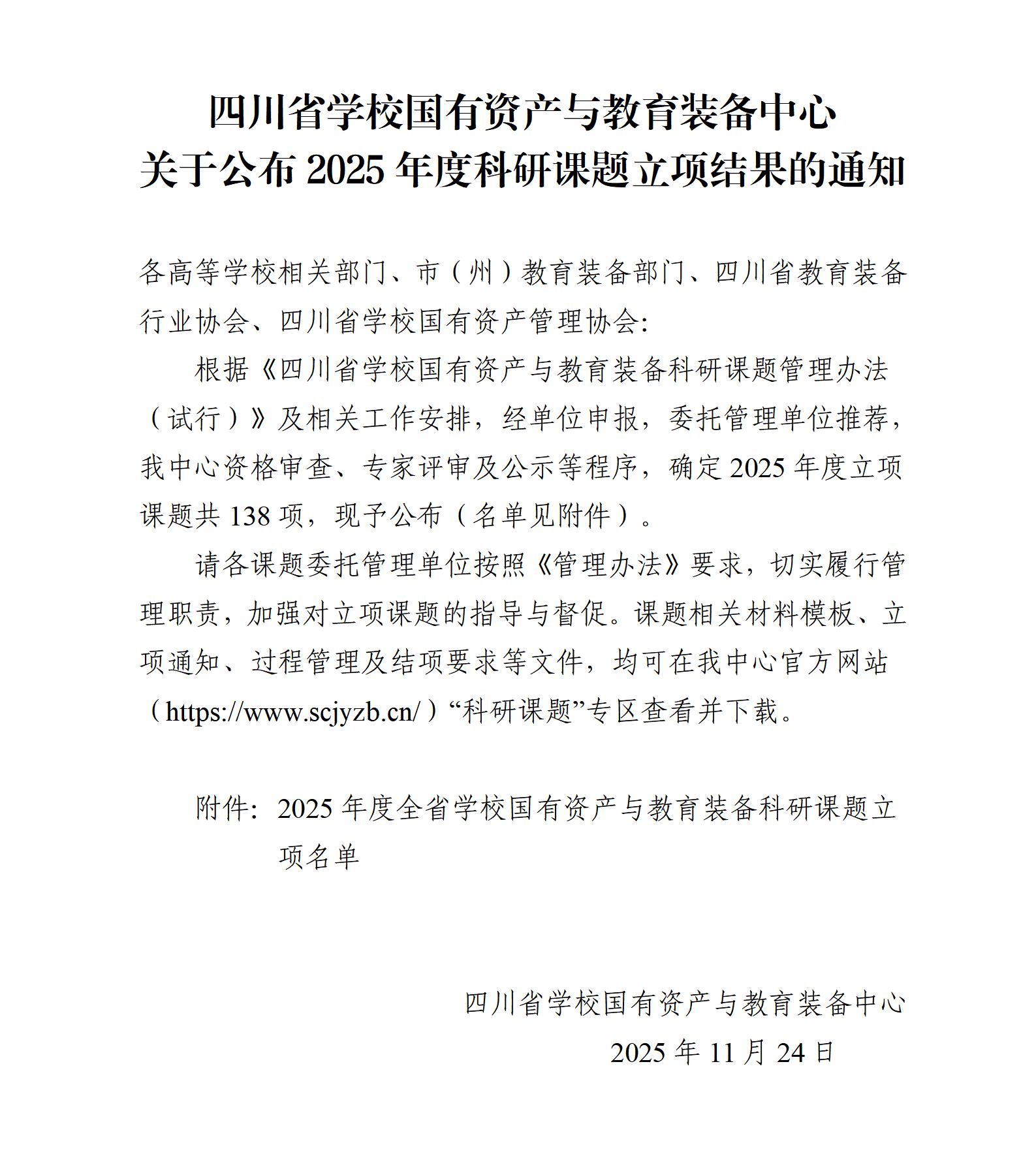 四川省学校国有资产与教育装备中心关于公布2025年度科研课题立项结果的通知