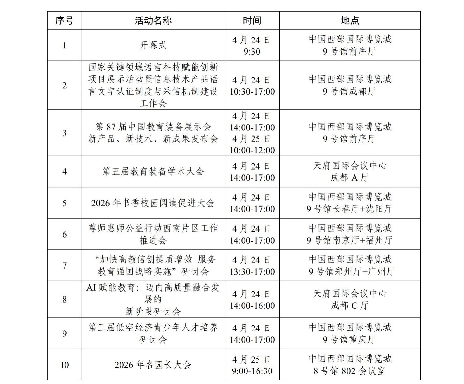 锦江春色,芙蓉花开。天府之国,蓉城成都,以千年积淀的文韵与创新开放的胸怀,诚邀四海宾朋。值此春和景明之际,由中国教育装备行业协会主办、四川省教育厅和成都市人民政府共同承办的第87届中国教育装备展示会将于2026年4月24日至26日在成都市隆重启幕。欢迎全国教育同仁及社会各界人士共赴这场以“人工智能引领教育装备高质量发展”为主题的教育与科技盛宴,成都西博城,不见不散!