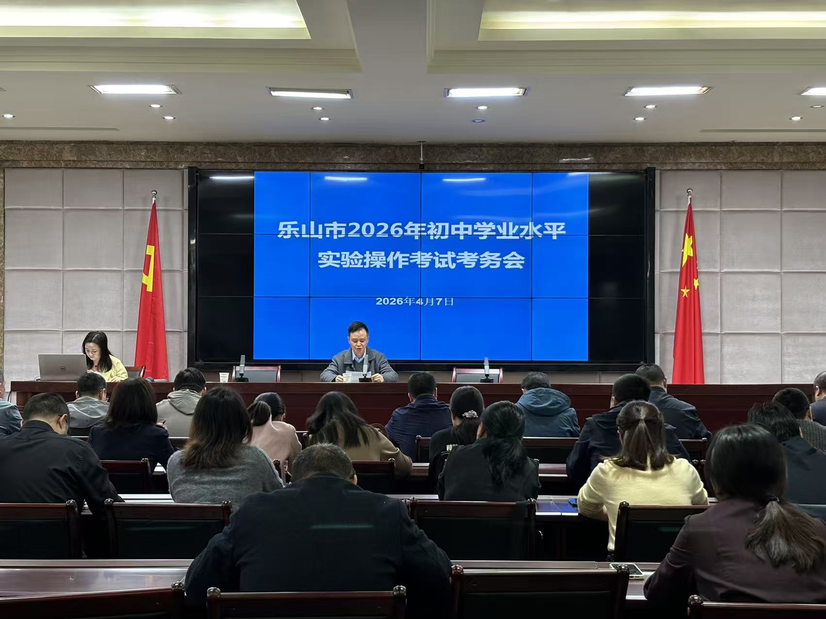为全面做好2026年初中学业水平实验操作考试(以下简称“初中实考”)各项准备工作,4月7日上午,乐山市现代教育技术装备处组织召开全市初中实考考务工作会。各区(市、县)电教教仪站站长及考点学校物理、化学、生物学主监考教师参加会议。