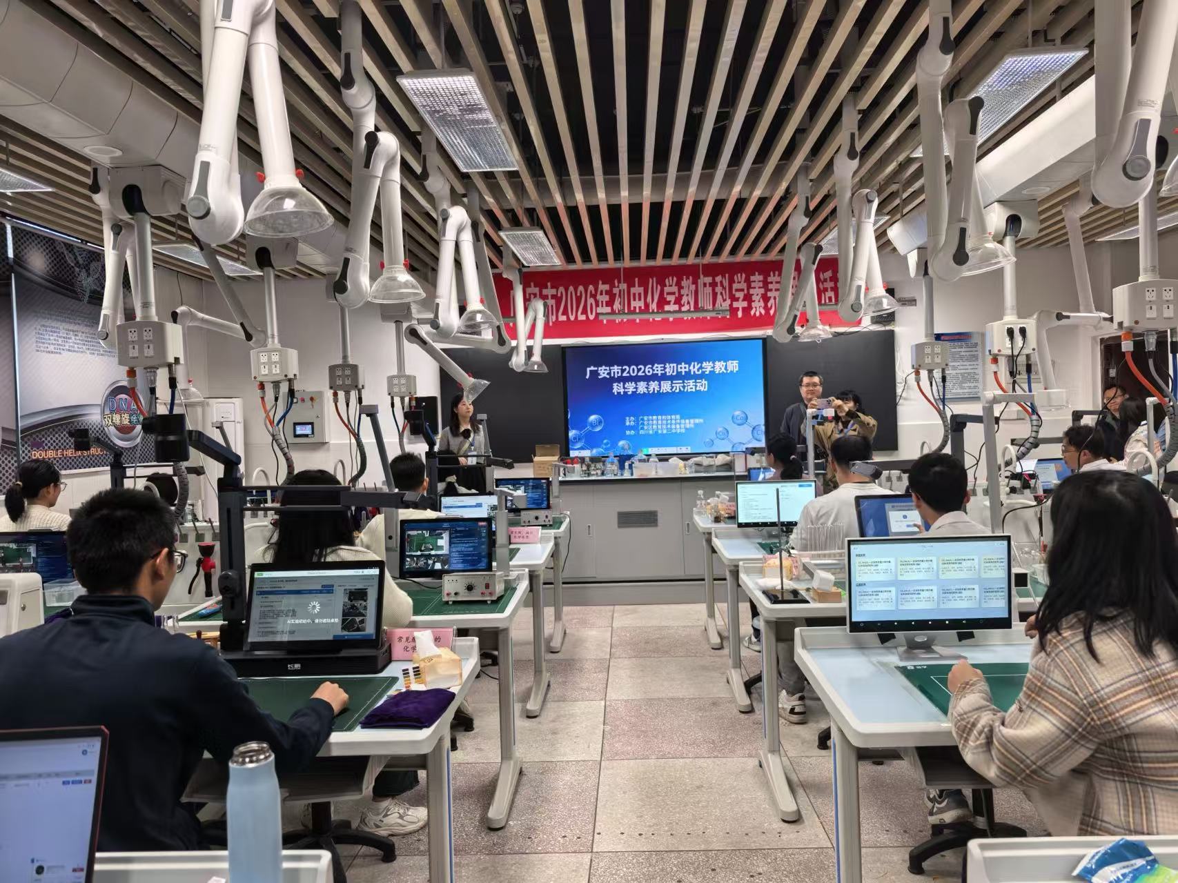 为深化教育数字化转型,进一步提升初中化学教师专业素养与实验教学能力,由广安市教育和体育局主办、市技装所承办的2026年初中化学教师科学素养展示活动于近日圆满落幕。从各县(市、区)推选的15名初中化学教师,通过“理论答题+实验操作”的形式进行现场比赛,展现了广安市化学教师队伍扎实的专业功底与良好的科学素养,也为数字化背景下教师评价改革探索出一条新路径。