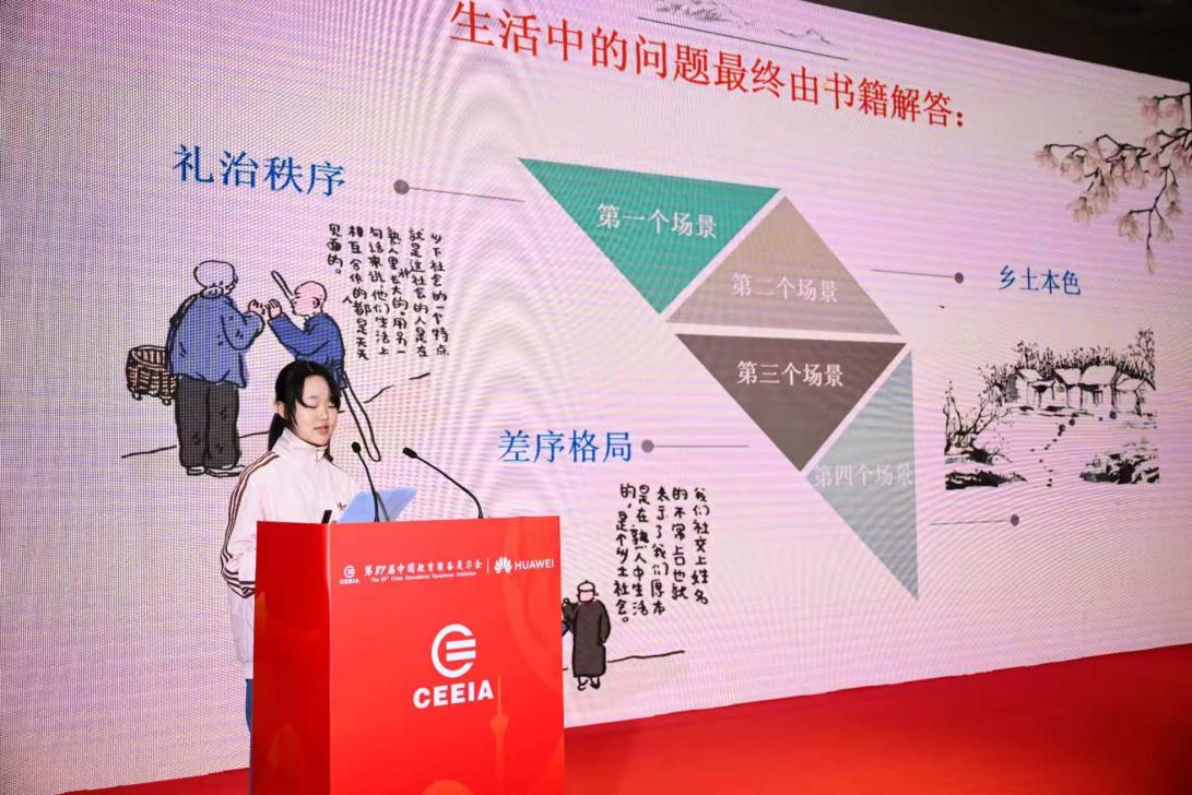 成果展示环节,来自多地的师生代表带来读后感、绘画、演讲、情景剧、研学实践等8类精品案例分享,内容涵盖本土文化、家校共育等维度,充分展现我省中小学阅读活动的创新实践与育人价值。图1 未来学习中心——AI赋能创新实验室教学场景